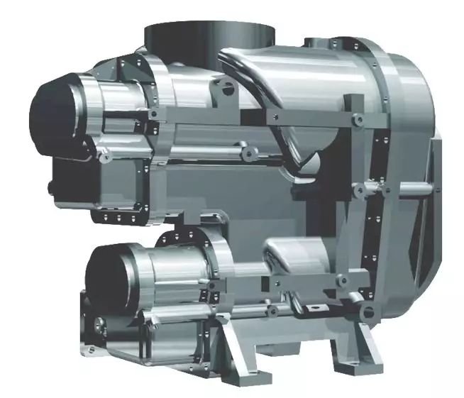 - 雙電機(jī)獨(dú)立驅(qū)動(dòng),每級(jí)壓縮比相比單級(jí)壓縮降低,轉(zhuǎn)子間泄漏回流大大降低,產(chǎn)氣量增加;